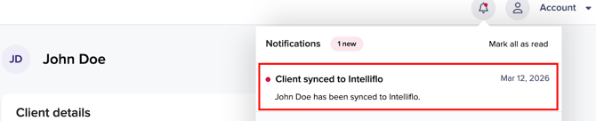 Clicking the notification will take you to the right client in Intelliflo.