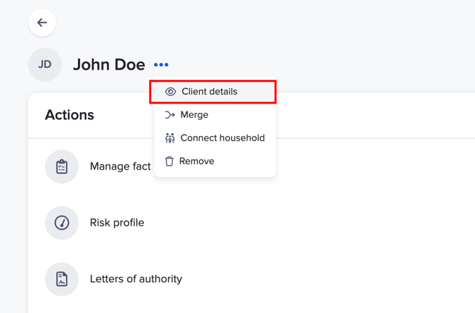 Once signed in, you will find the feature available from the Client details actions menu for all of your clients.