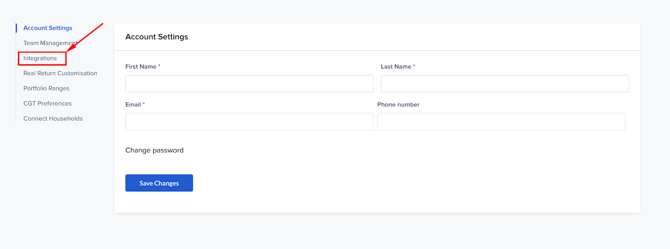 The first step is to make the API connection. You can do this by visiting the Integrations tab on the Settings page: