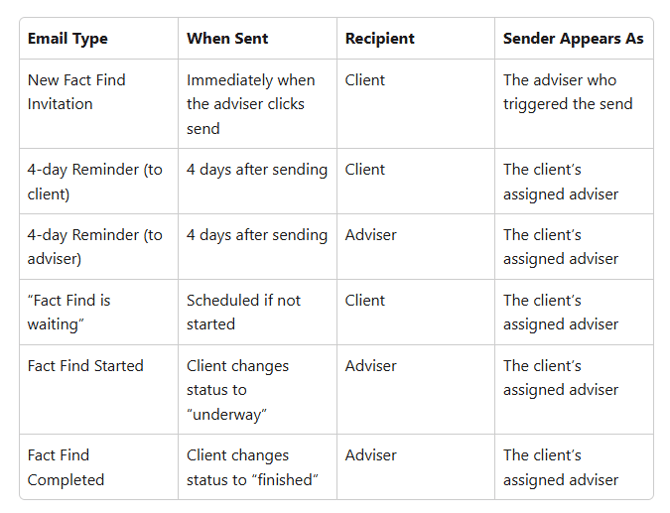 Fact Find Notification Flow