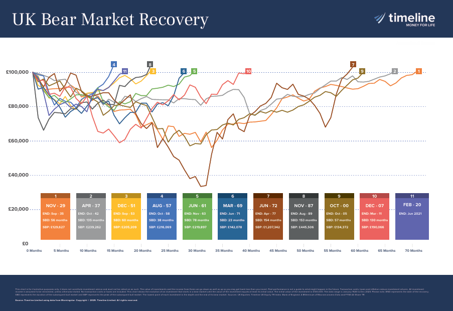 Consider the case of a 50/50 UK portfolio. Even though the percentage allocated to equity is the same for both portfolios, the lack of diversification in the UK portfolio implies a higher average annual volatility compared to the global portfolio case. The extent to which one can measure the effect of a lack of diversification is optional. One can focus on historical drawdowns, Value at Risk, or even the full history of bear markets and recovery time: