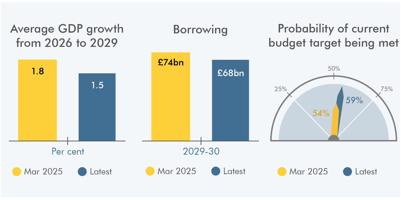 From a GDP perspective, it’s a similar story. Unfortunately, this Budget did not inspire high growth forecasts. The OBR has revised down its average GDP forecast for 2026-29 from 1.8% to 1.5%. The lacklustre predicted growth, teamed with current inflation levels and squeezed household incomes, will come at a substantial cost for working professionals. The lower GDP is partly due to the flat trend in output per worker in the UK, a lingering issue since COVID. Worker productivity is incredibly important and impacts things such as living standards and economic growth within a country. All these points to Reeves’ not quite keeping her promise that Labour would ‘kickstart economic growth’, but rather keep it relatively muted.